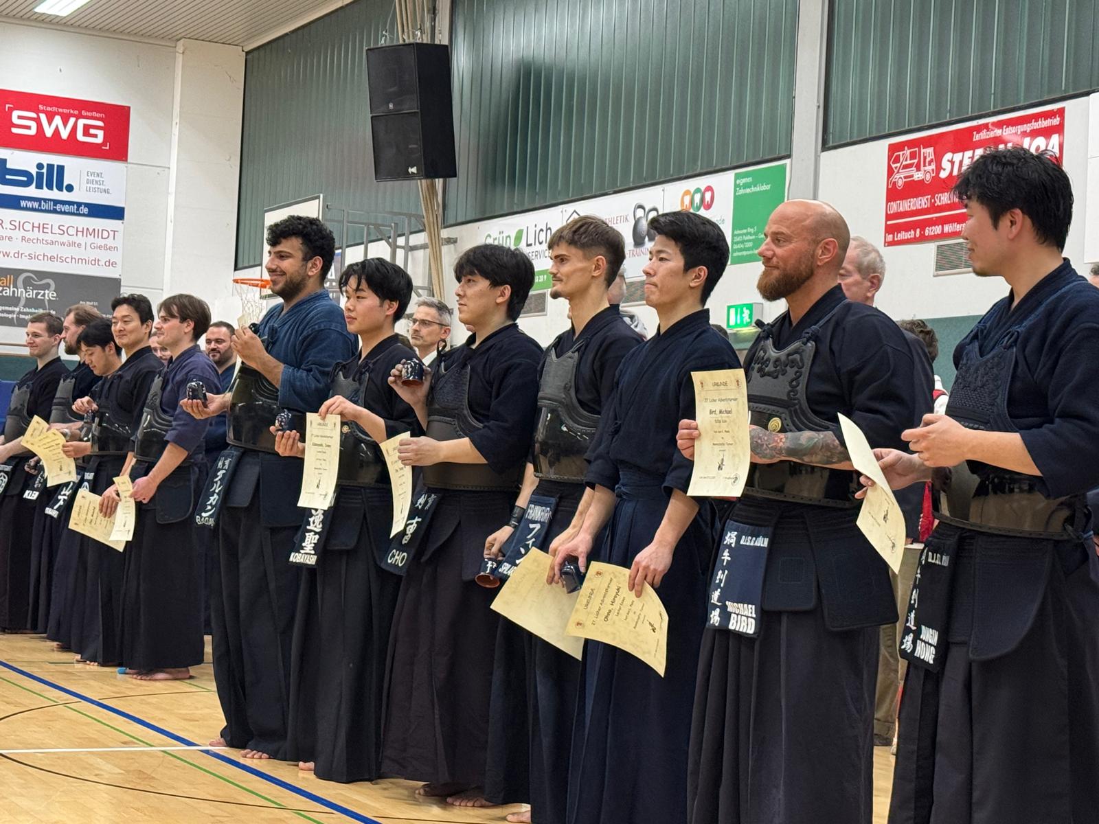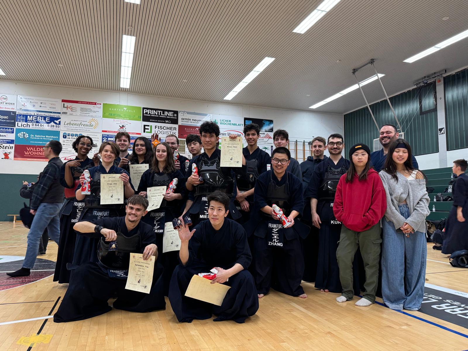 Für Hiro war im Dan-Turnier aber noch nicht Schluss, holte er sich mit unserem Vereinskameraden Finn Spilarewicz sowie befreundeteten Kendoka aus Ken Iku und Sprendlingen im brisanten Team-Turnier den wohlverdienten ersten Platz! Tolle Leistung Männer!
